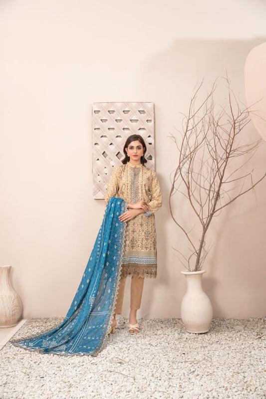 Ladies Unstitched Embroibered Lawn Suit by Tawakkal Fabrics