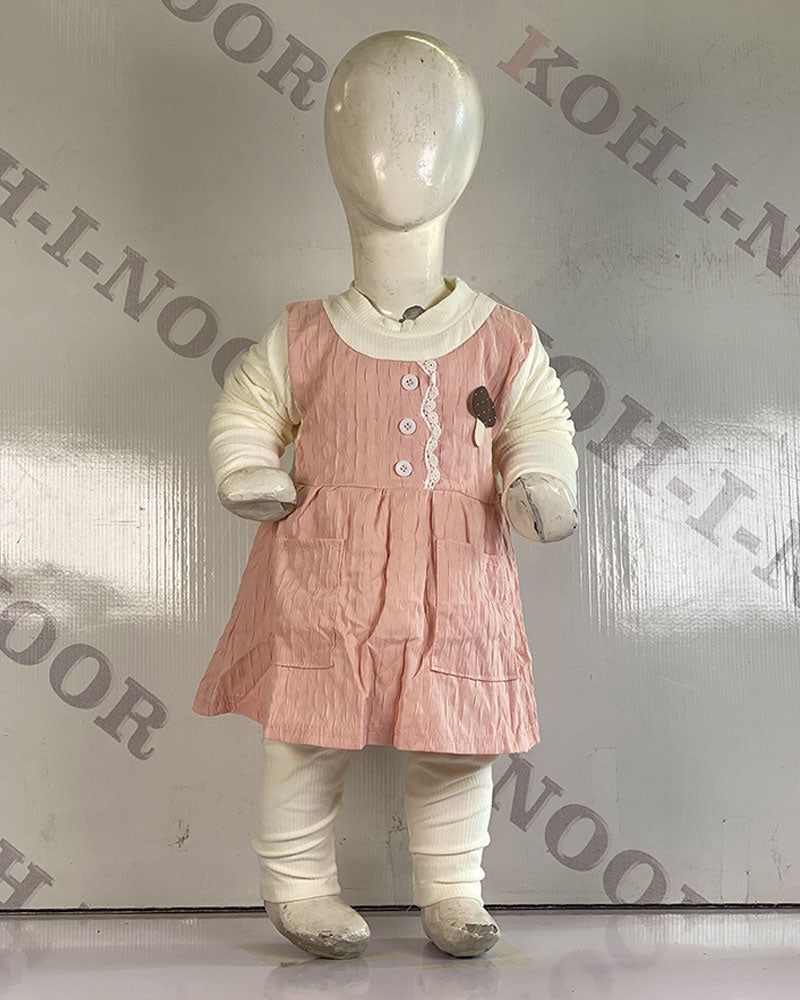 This adorable two-piece outfit features a soft cream underlayer with a peach-pink crinkled dress overlay. Lace detail and buttons add a classic charm, making it ideal for parties, photoshoots, or sweet everyday wear.