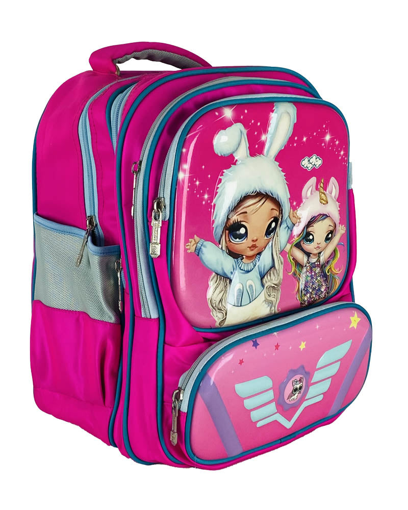 Make school days more exciting with this eye-catching 3D Pink Girl-Themed Backpack. Designed for kids who love bold colors and fun characters, this vibrant backpack features a raised 3D front panel with two animated girls dressed in playful animal-themed outfits, set against a sparkling pink background.