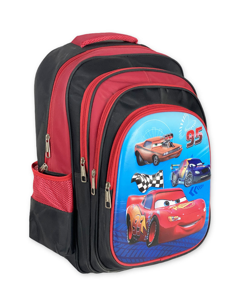 This vibrant 3D Cars themed backpack is perfect for young fans of the popular racing movie. Designed with eye-catching red and black colors, it features a detailed 3D image of animated race cars, including the iconic number 95. Made from high-quality, durable materials, this backpack is built to withstand daily school use while keeping your child’s belongings safe.