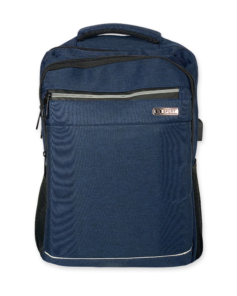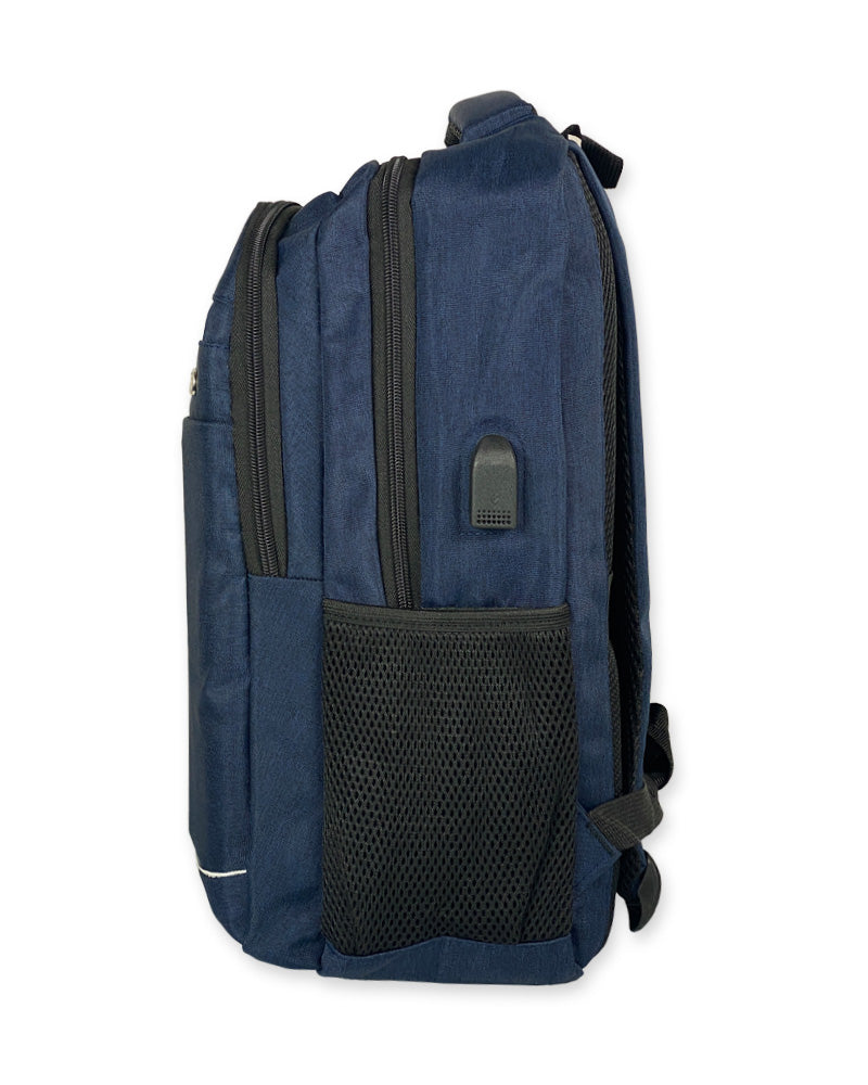 Stylish and durable navy blue backpack designed for daily use. Comes with multiple compartments and a built-in USB charging port for on-the-go convenience.