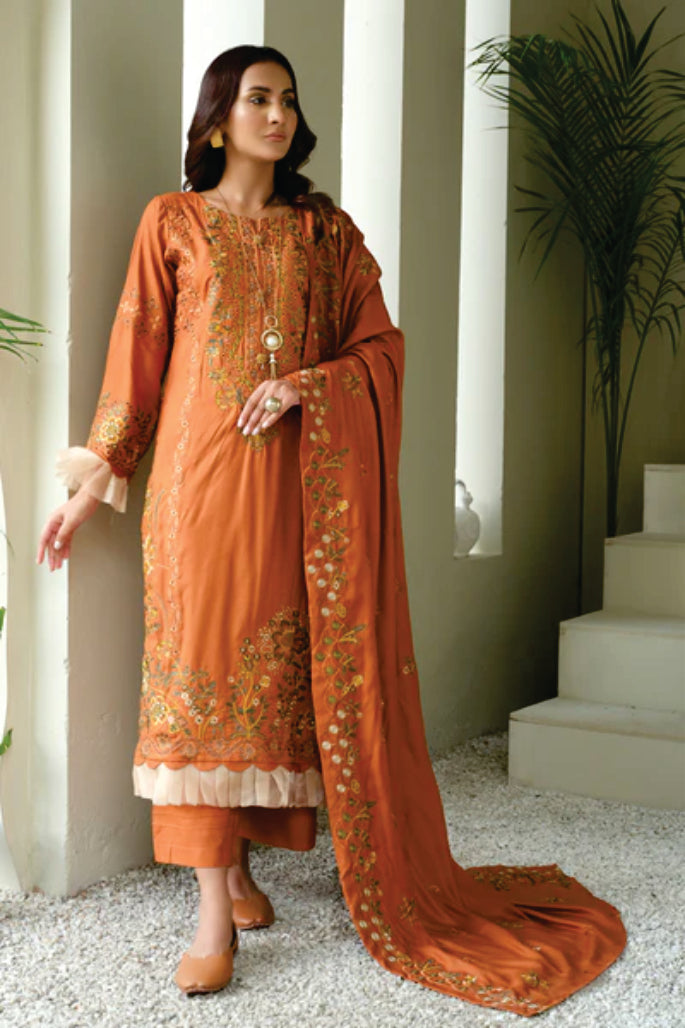 Linen Embroidered Collection By Marjjan ML-247(RUST)