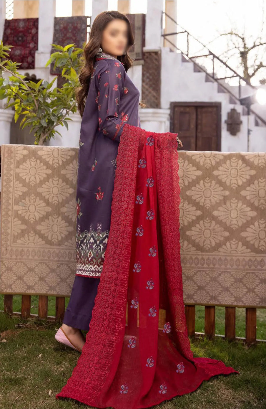 Mahees Digital Printed Lawn Collection 2024 has been styled in the image for photography and illustrative purposes.
