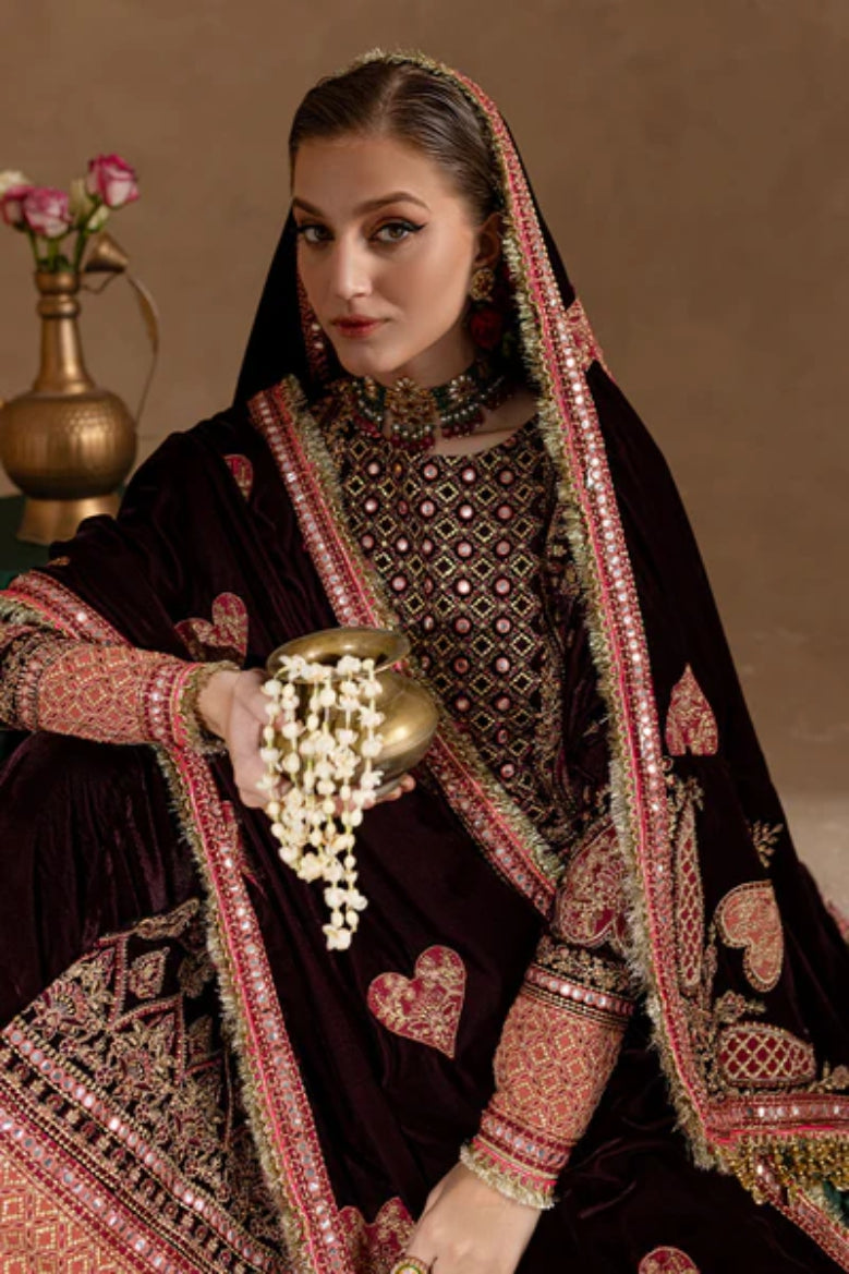 Marjjan Velvet Embroidered 3 Piece Suit - Winter