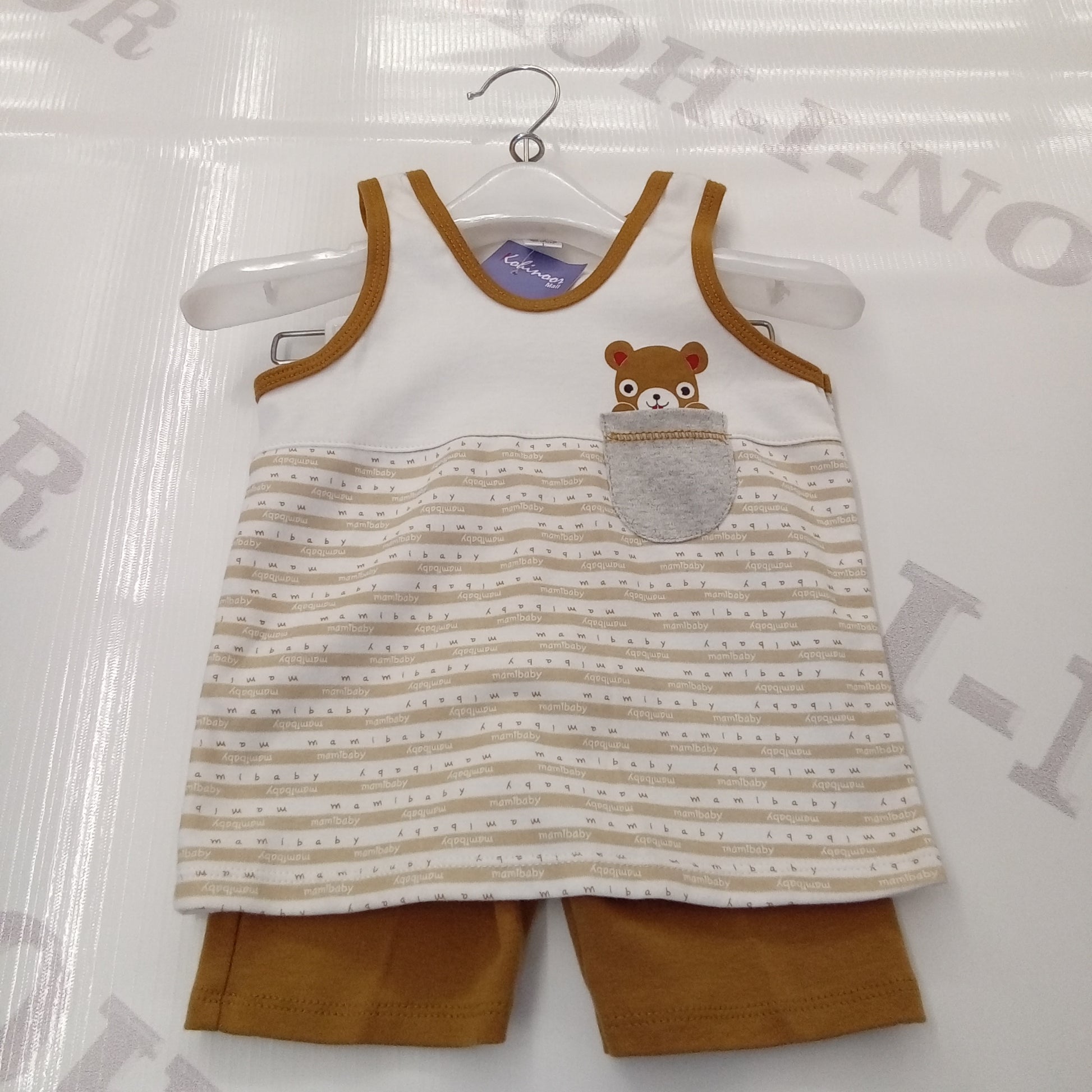 sleeveless shirt , Satisfying belt short , color brown and white , for 0 to 6 month kids