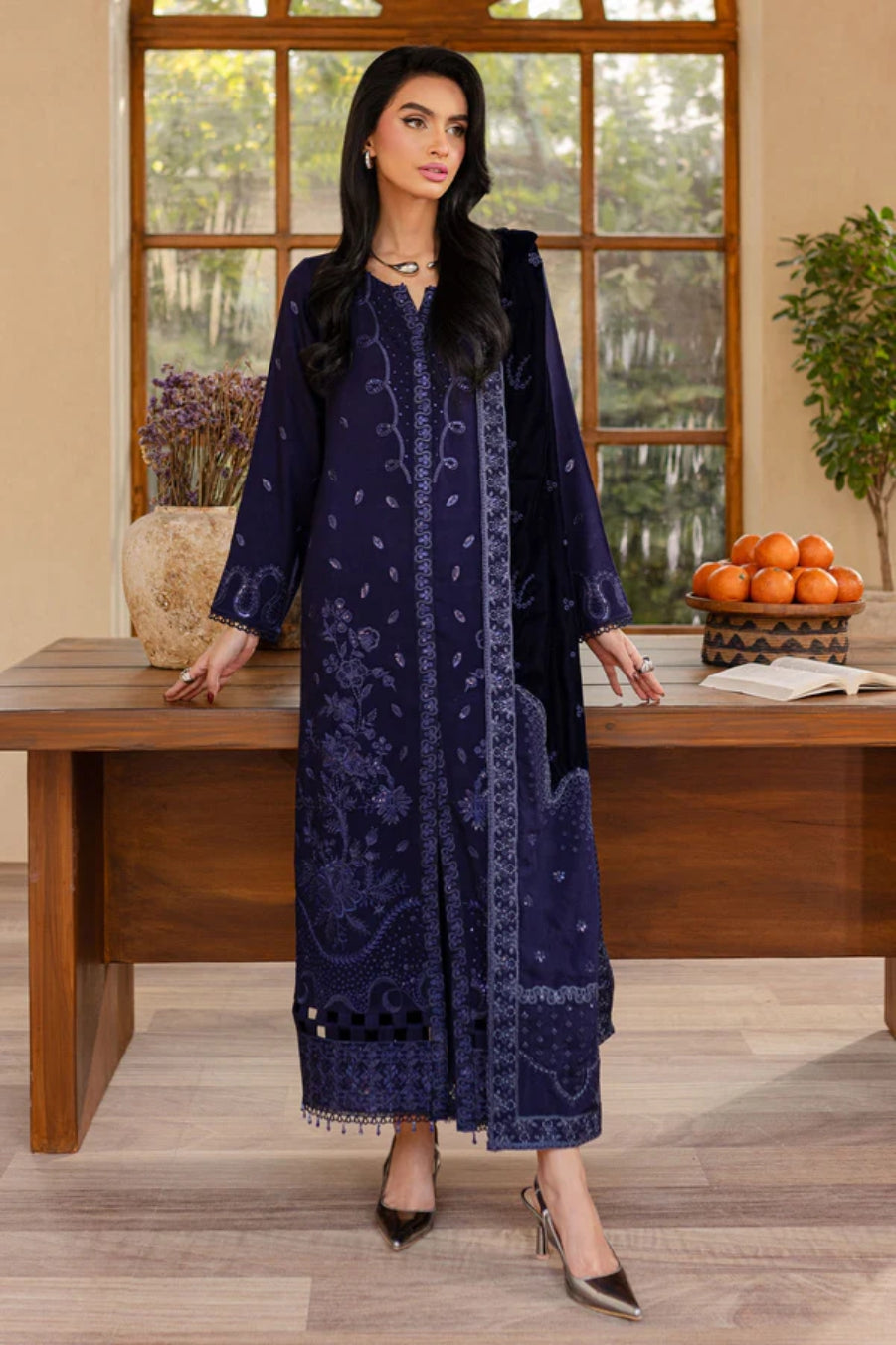 - Embroidered Laser Cut Velvet Shawl