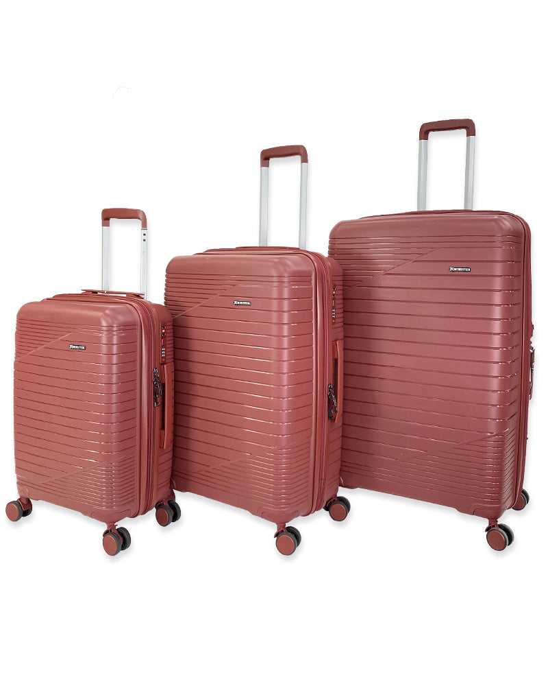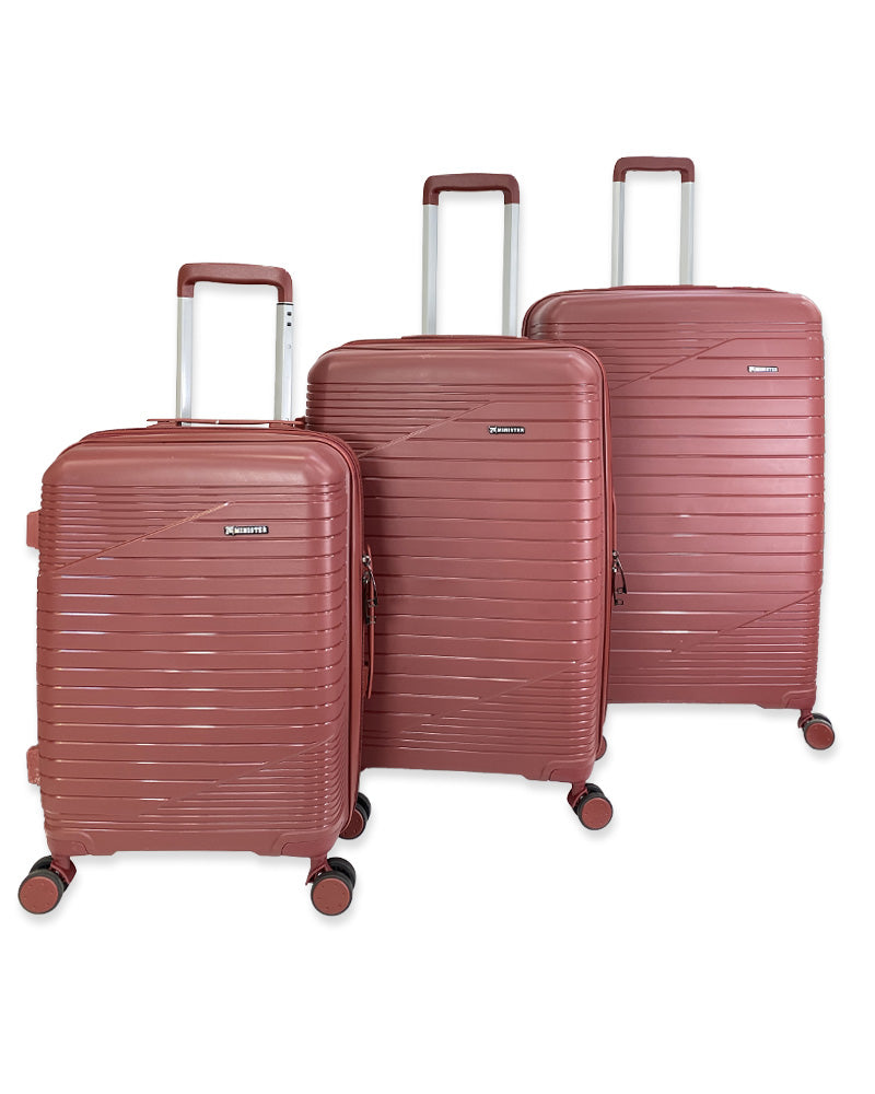 Travel smart and in style with this rose red 3-piece trolley luggage set. Built for durability and smooth mobility to match your journey's pace.