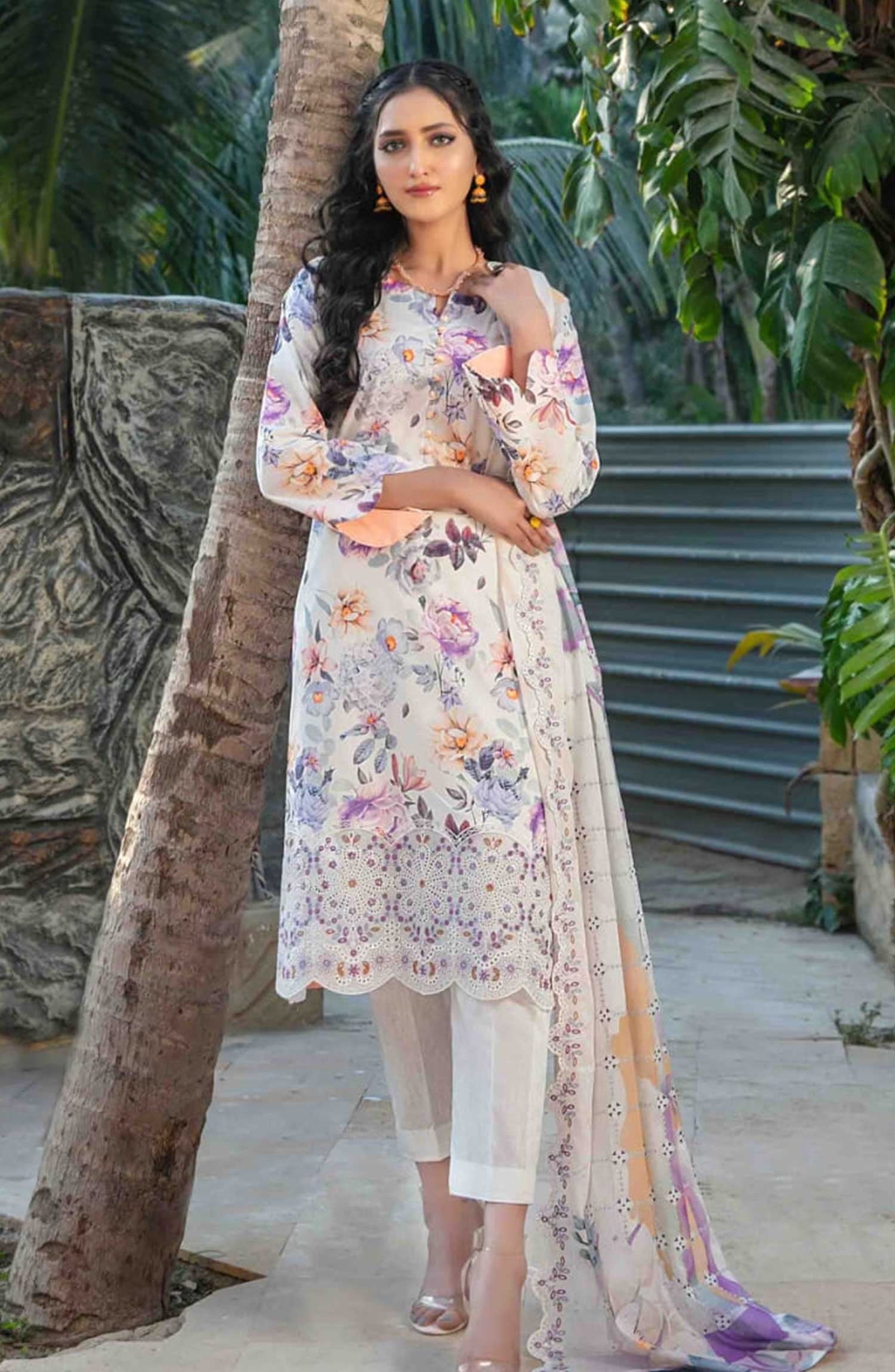 Cutwork Embroidered Digital Printed Lawn Dupatta